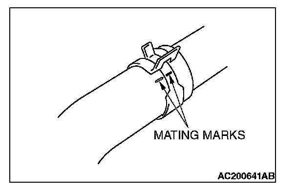 After making mating marks on the radiator hose and hose clamp, disconnect the radiator hose.