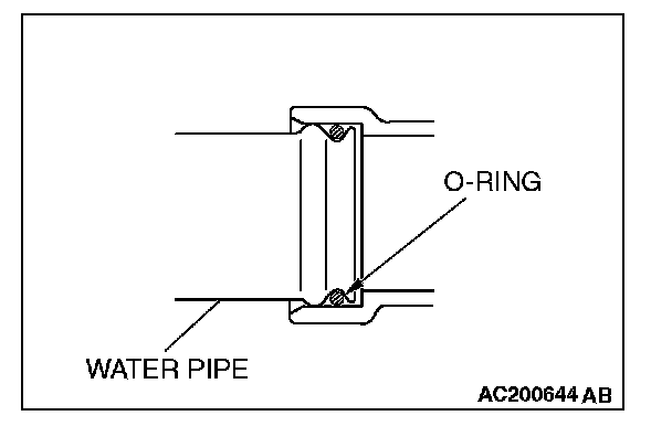 Insert the O-ring to the water pipe, and coat the outer portion of the O-ring with water or engine coolant.