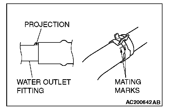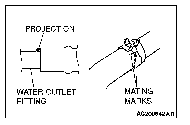 2. Align the mating marks on the radiator hose and hose clamp, and then connect the radiator hose.