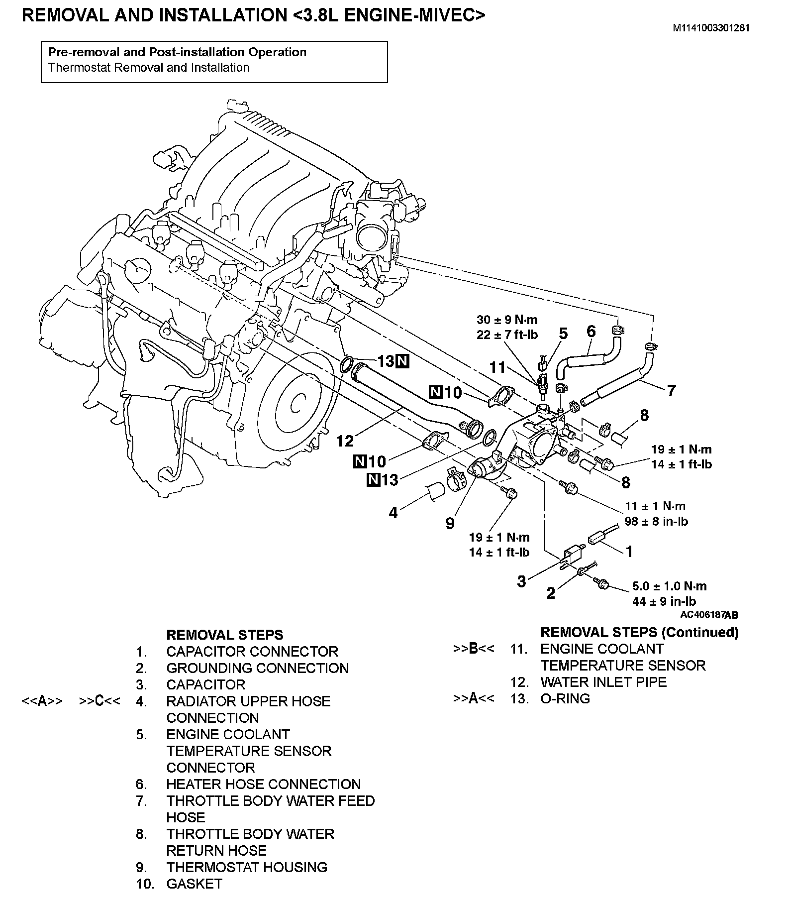 REMOVAL AND INSTALLATION <3.8L ENGINE (EXCEPT MIVEC)>