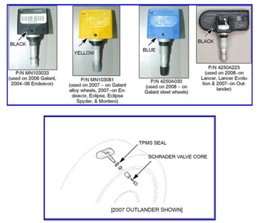 Replacement TPMS sensors are activated by the factory and require only registration to the vehicle they are being installed on. Additionally if tires are switched between vehicles the sensors must be reregistered to BOTH vehicles. DTCs will be set if they are not. The MUT-III is required to register TPMS sensors.