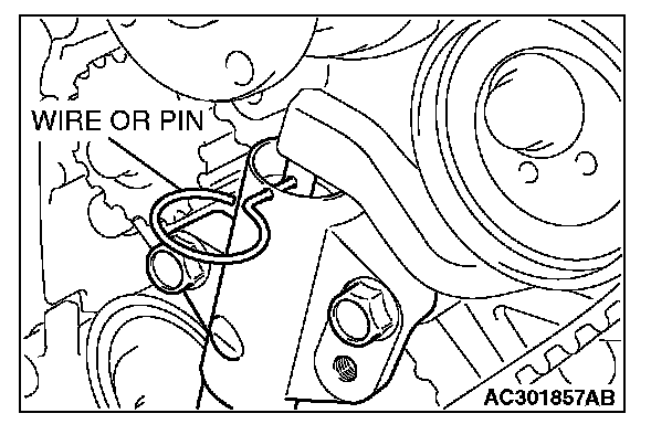 10. Insert wire or pin removed in Step 7 again, and ensure that it can be pulled out with a light load. When wire or pin can be lightly removed, appropriate tension is applied on timing belt. In this case, remove wire or pin.