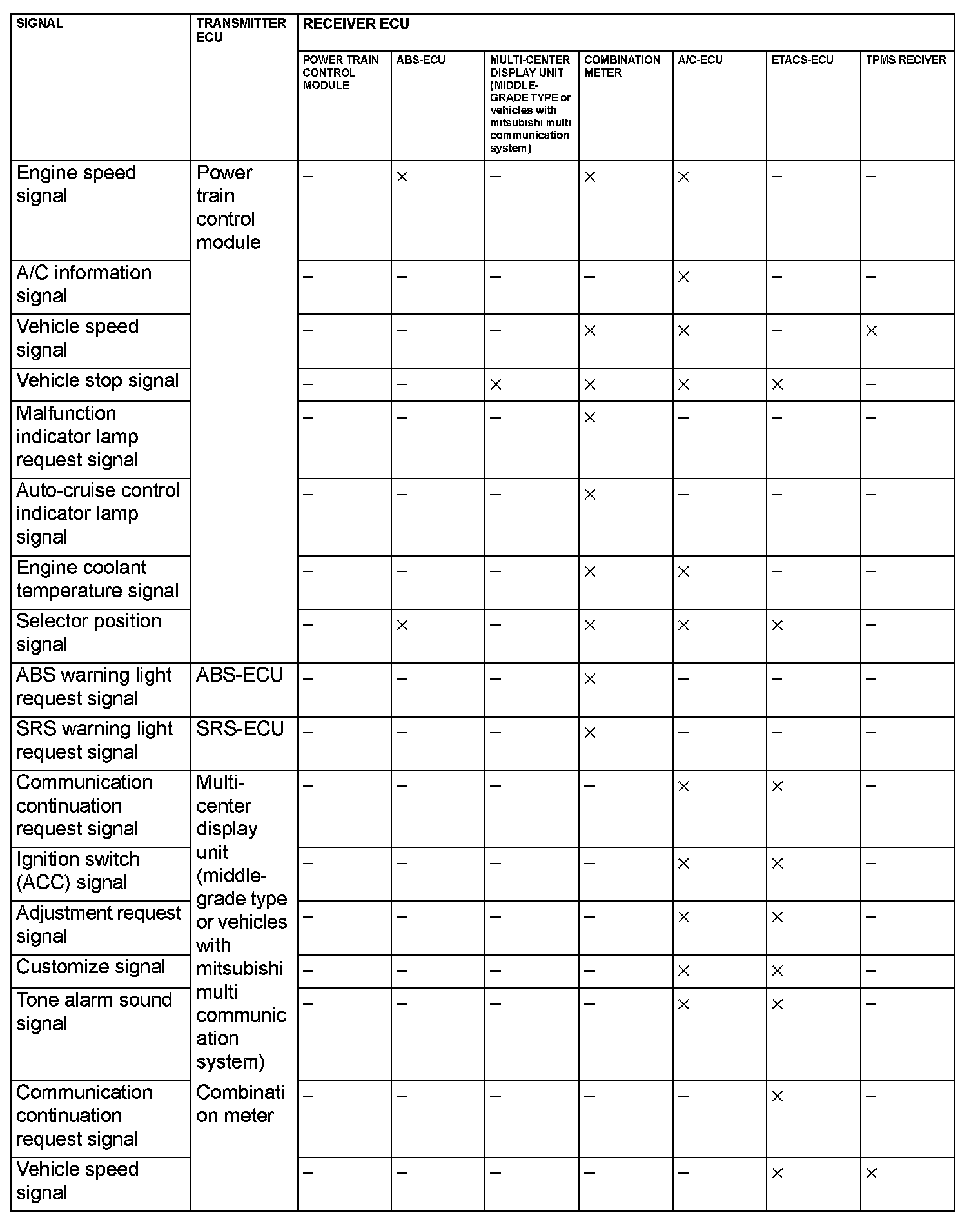 CAN Communication Signal Table