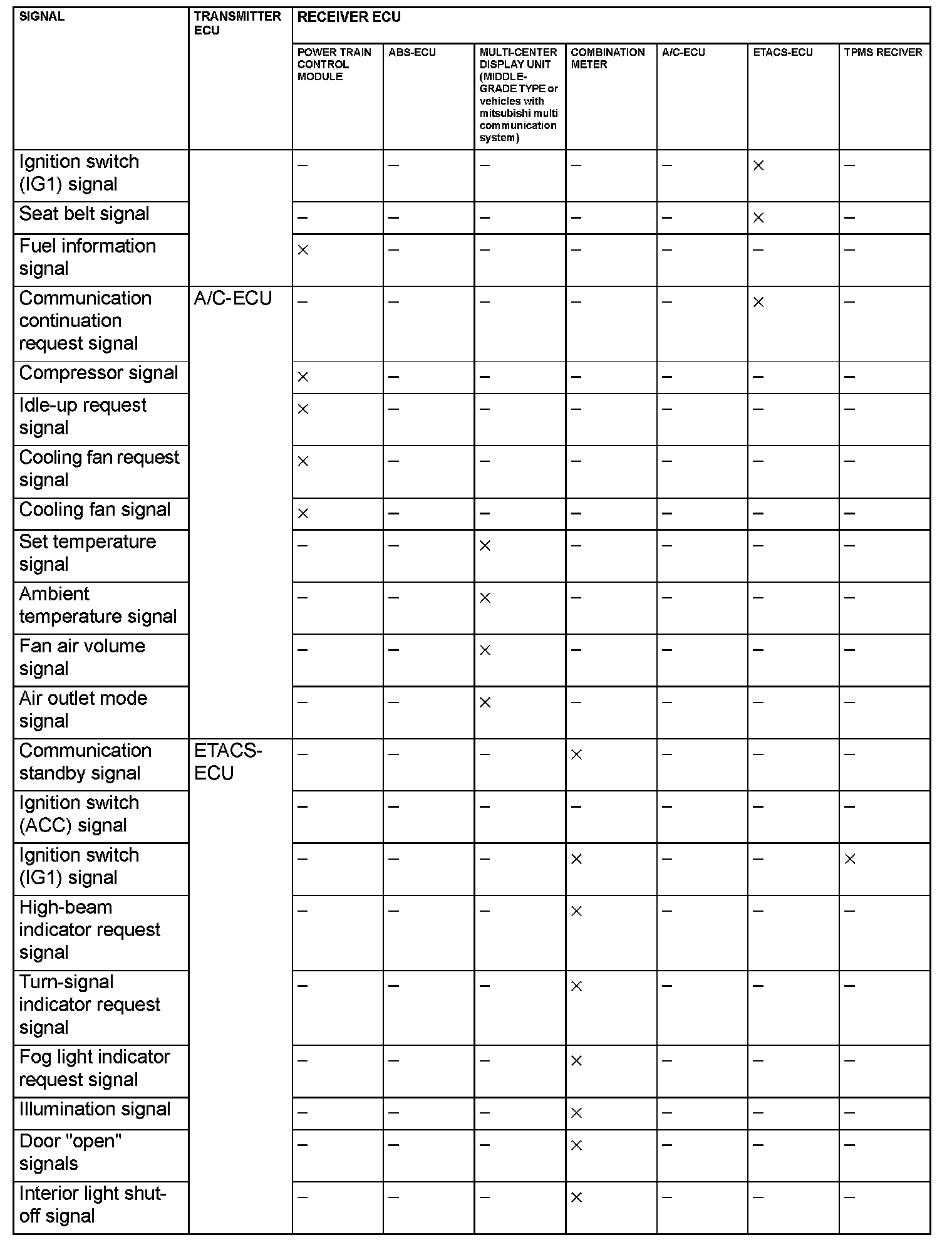 CAN Communication Signal Table Part 1: