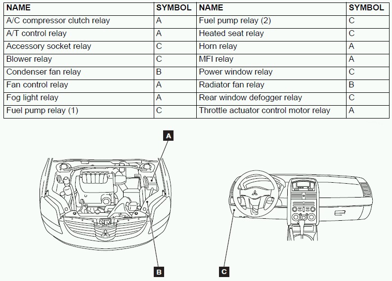 Main Relay (Computer/Fuel System): Locations