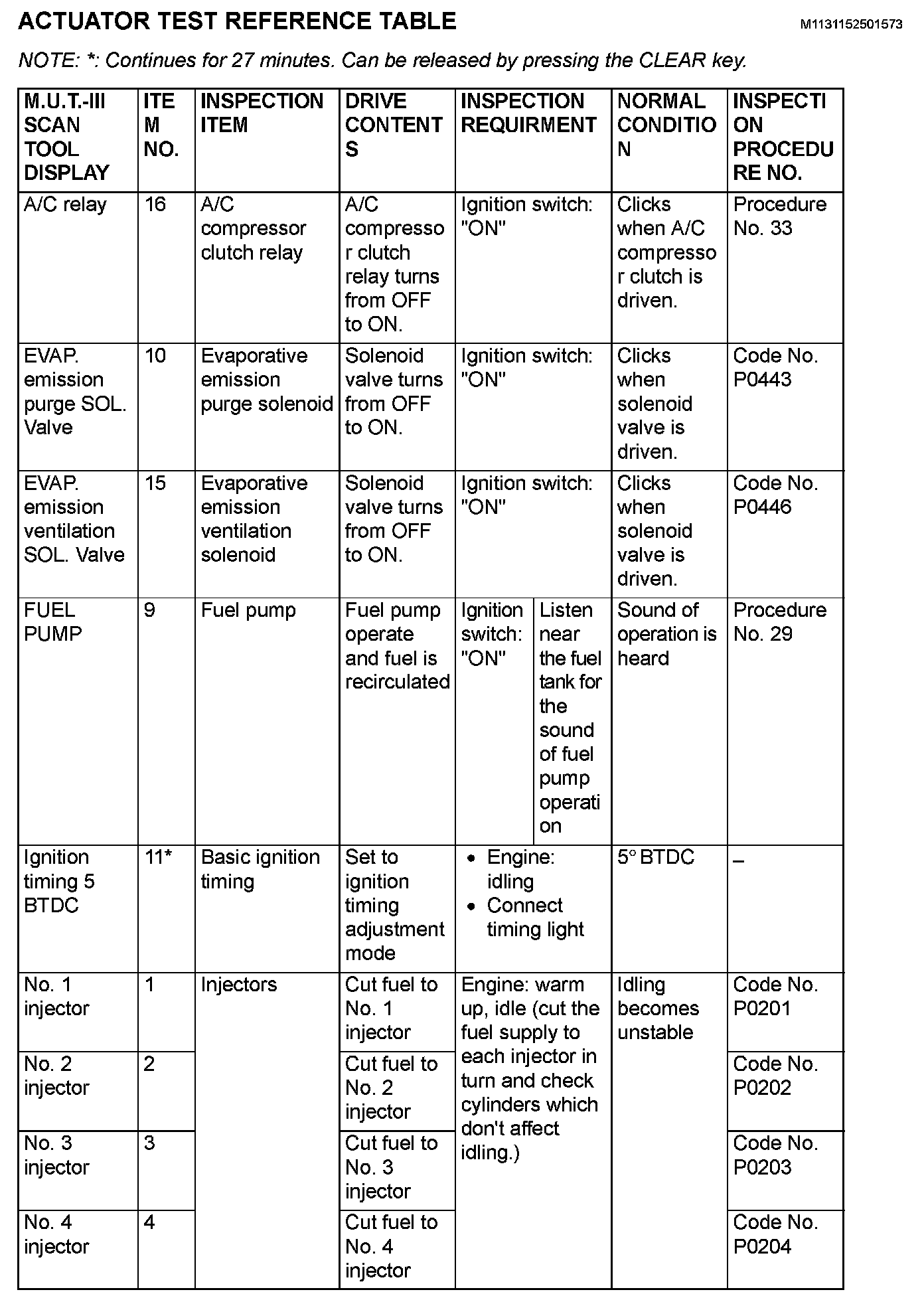 Actuator Test Reference Table Part 1: