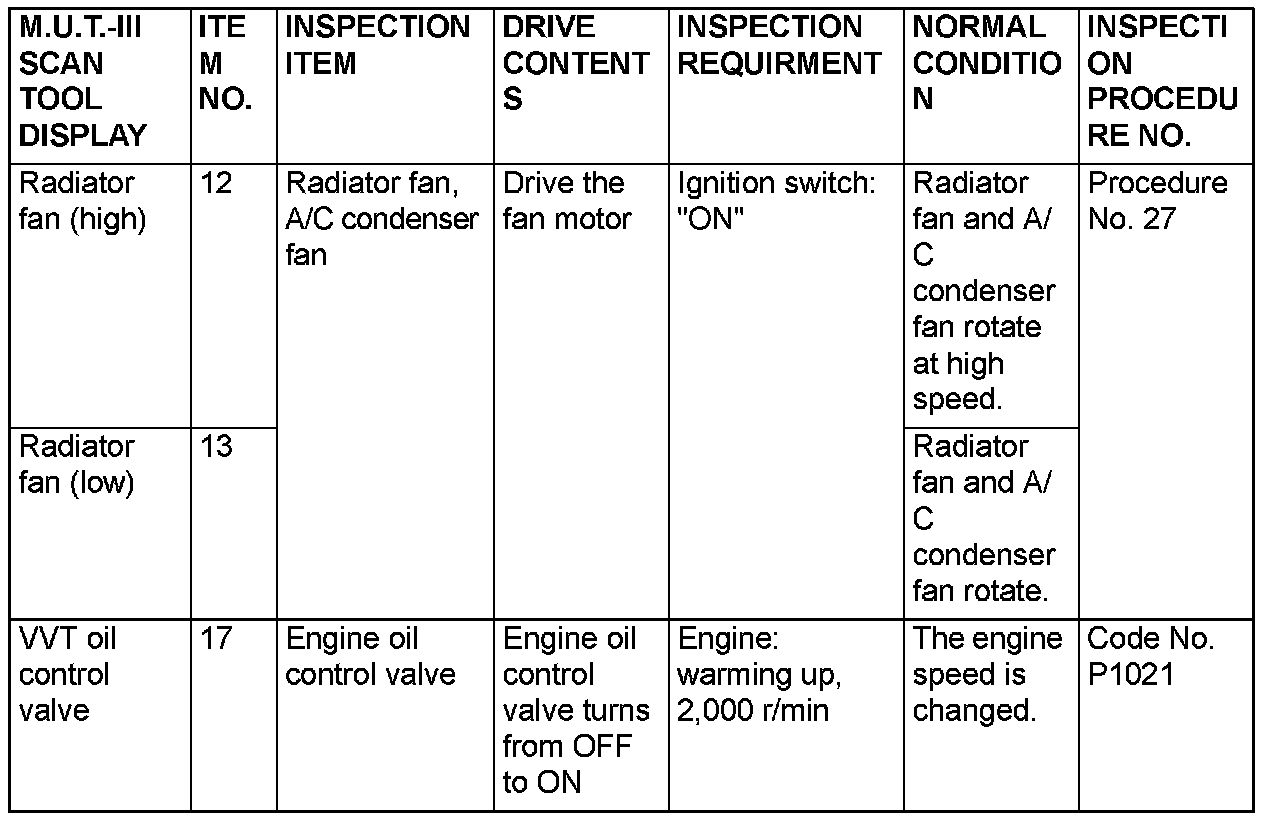 Actuator Test Reference Table Part 2: