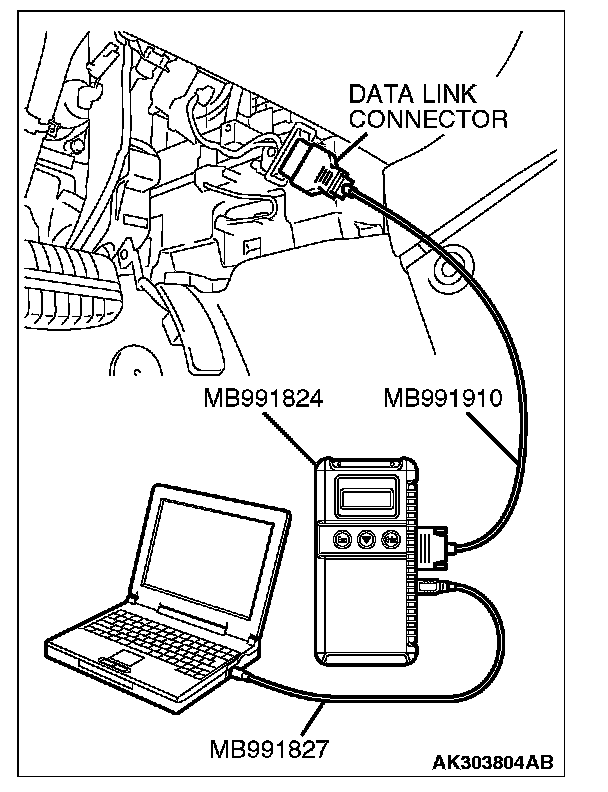 1. Connect scan tool MB991958 to the data link connector.