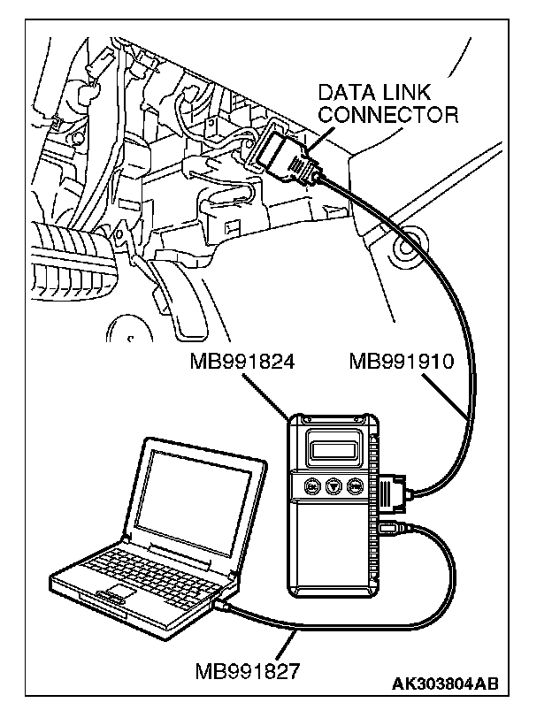1. Connect scan tool MB991958 to the data link connector.
