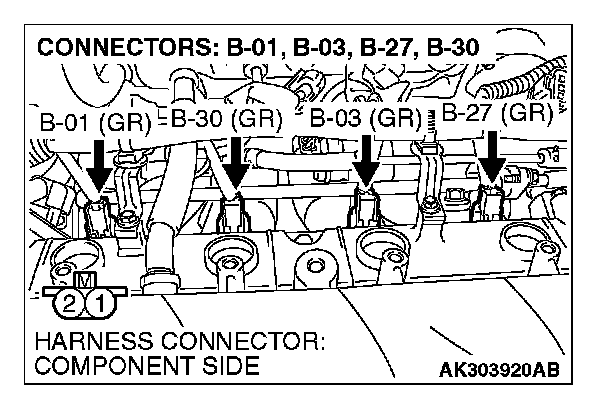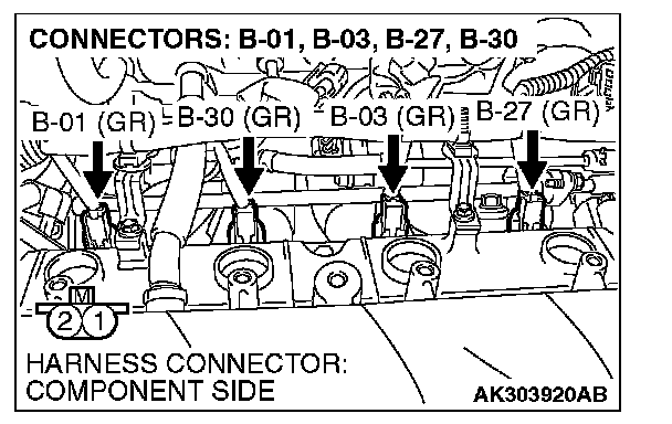 1. Disconnect the injector connector B-01, B-03, B-27 and B-30.