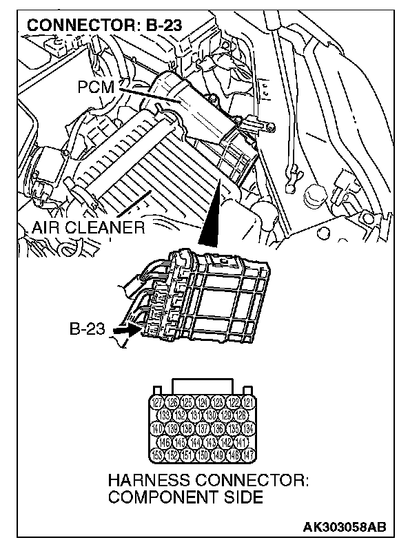 STEP 10. Check harness connector B-23 at PCM for damage.