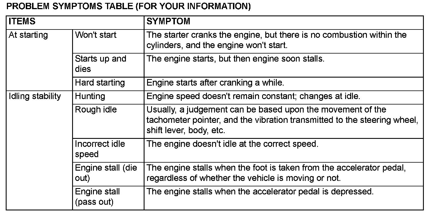 PROBLEM SYMPTOMS TABLE (FOR YOUR INFORMATION)