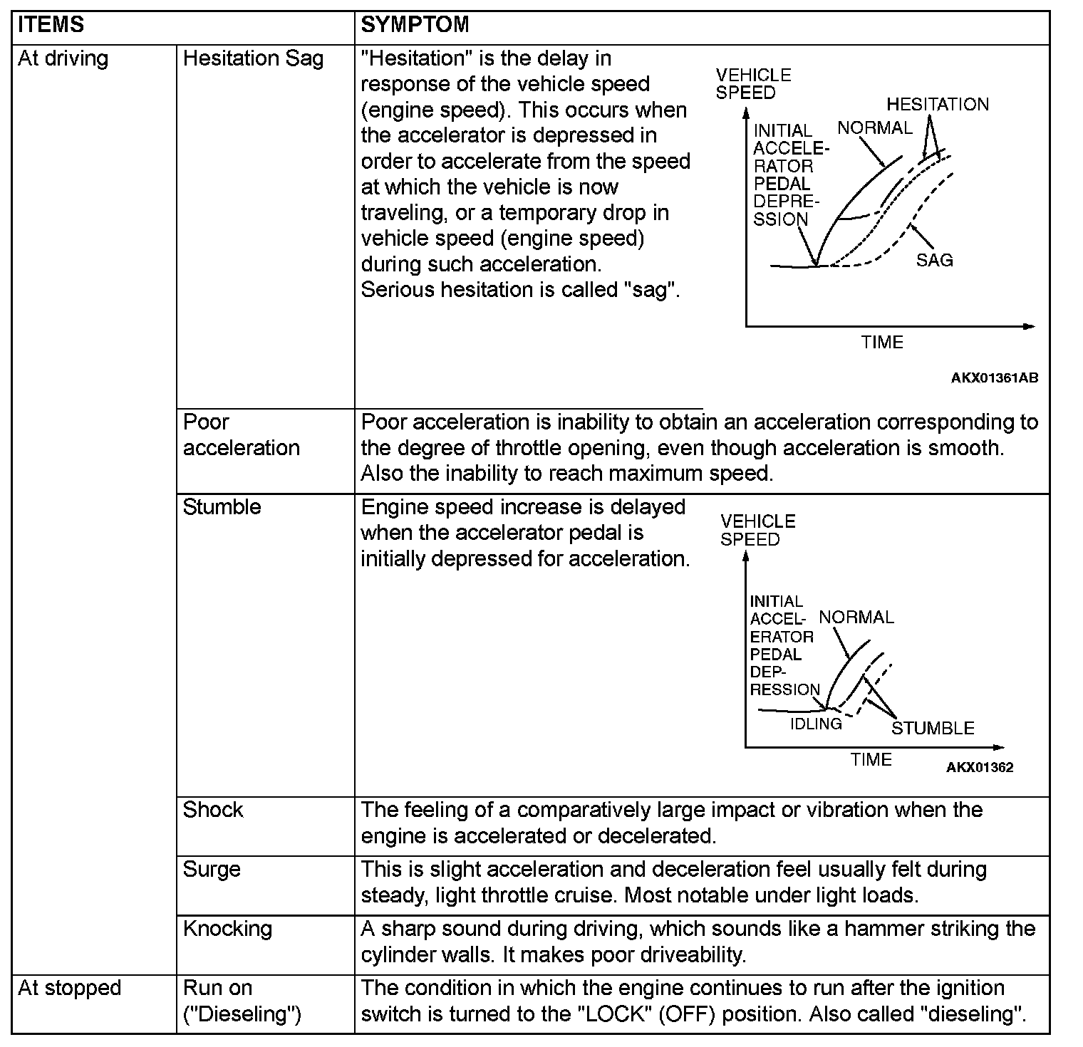 SYMPTOM CHARTInspection Chart For Trouble Symptoms Part 1: