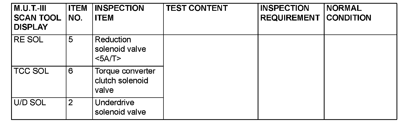 ACTUATOR TEST REFERENCE TABLE (Part 2):