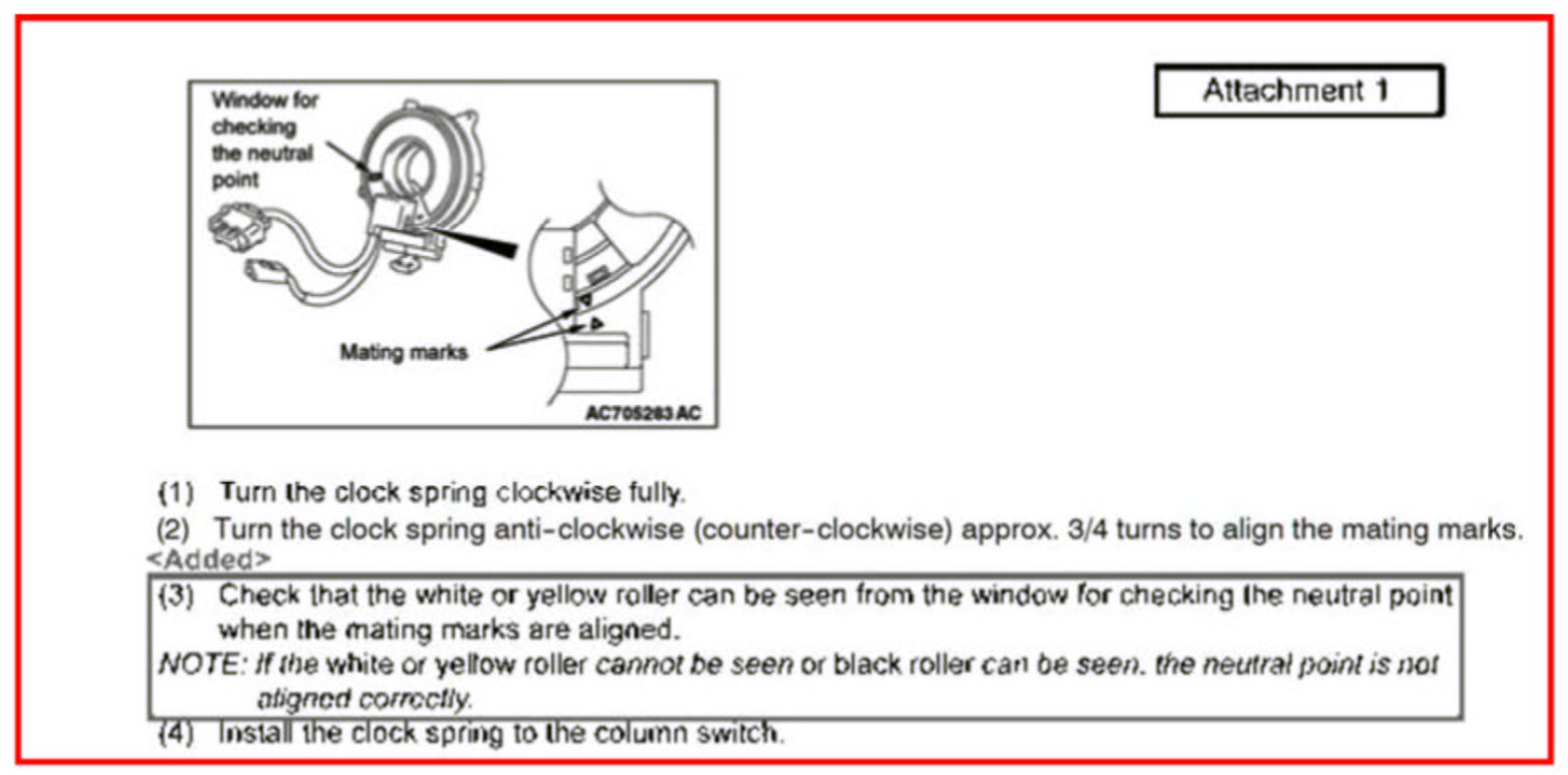 ALIGNMENT PROCEDURE FOR CLOCK SPRING NEUTRAL POINT - SERVICE MANUAL REVISION