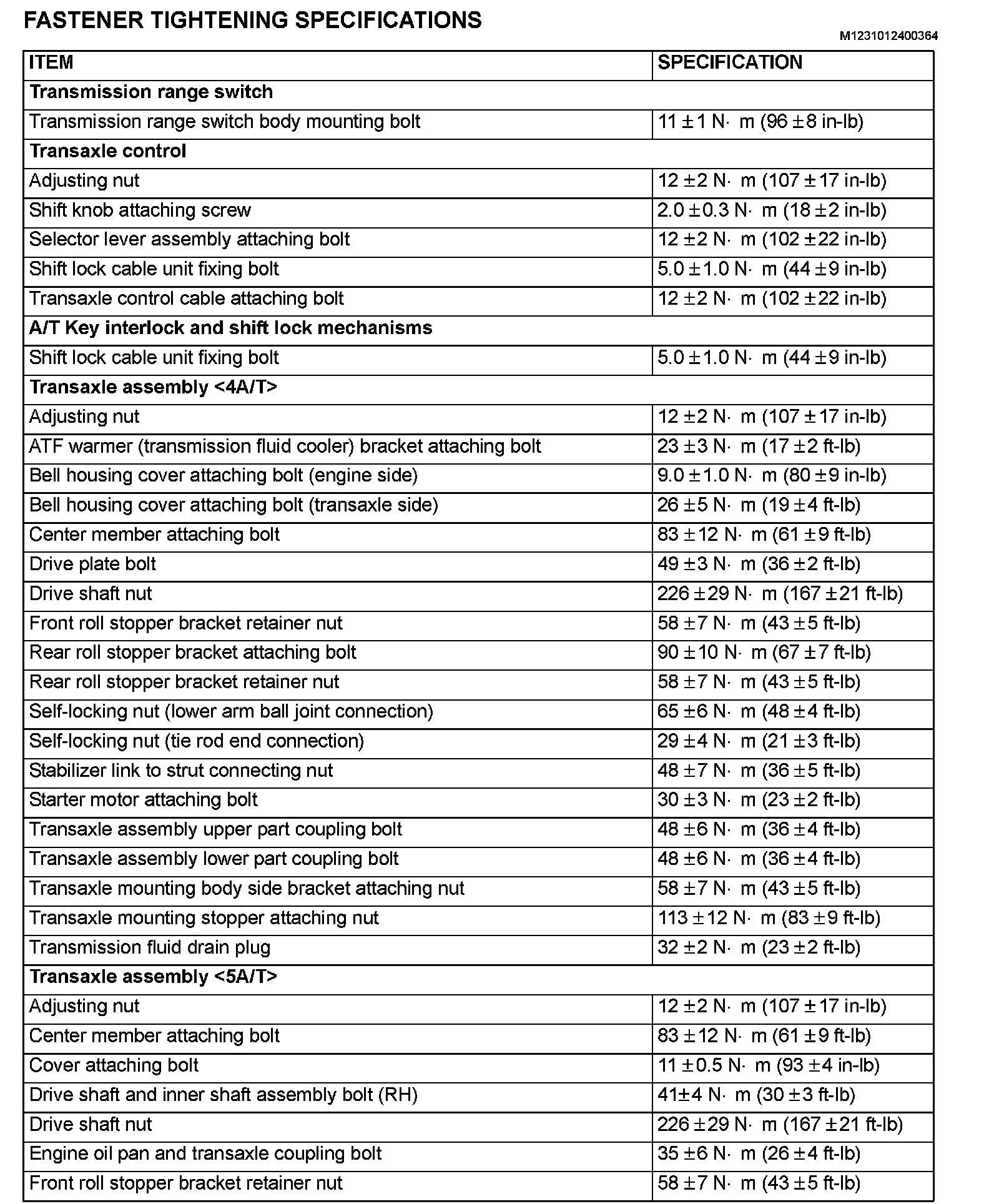 FASTENER TIGHTENING SPECIFICATIONS (Part 1):