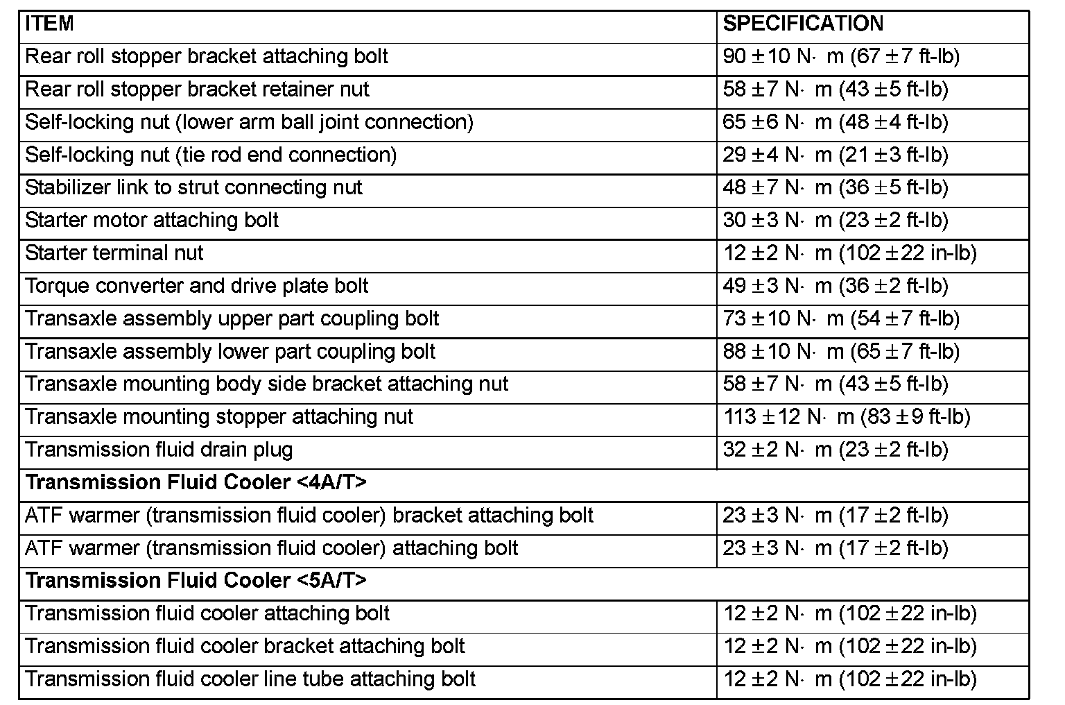 FASTENER TIGHTENING SPECIFICATIONS (Part 2):