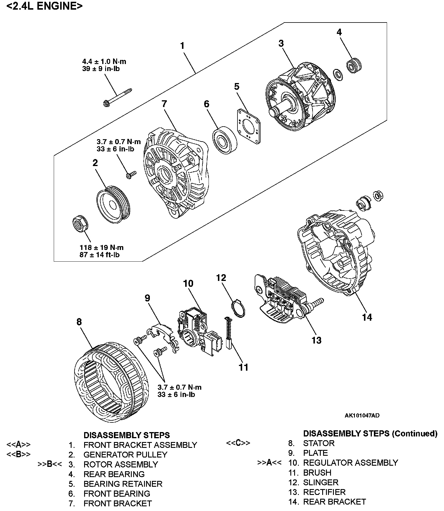 GENERATOR ASSEMBLYDisassembly Steps 1-14: