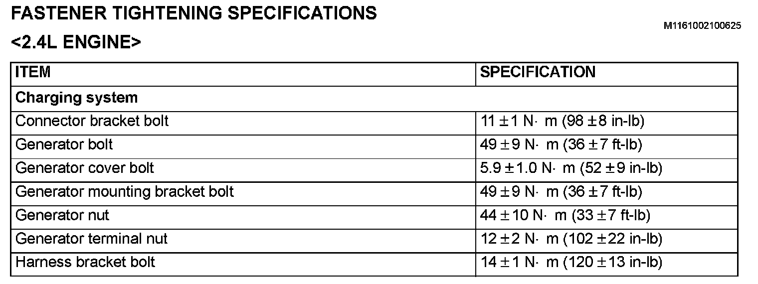 Charging System: Specifications