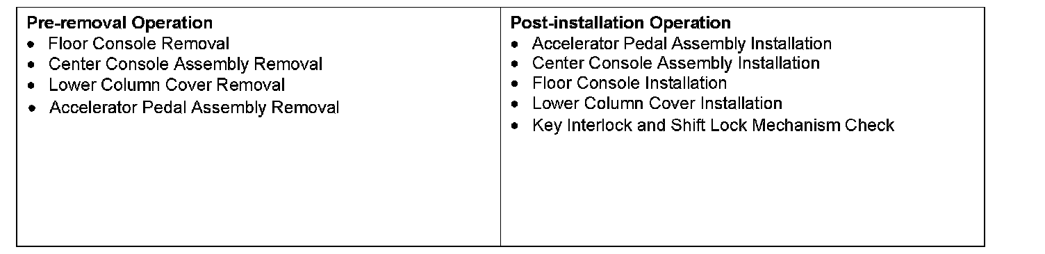 A/T KEY INTERLOCK AND SHIFT LOCK MECHANISMSREMOVAL AND INSTALLATION
