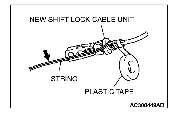 4. Wind a plastic tape around the string bound to the shift lock cable unit.