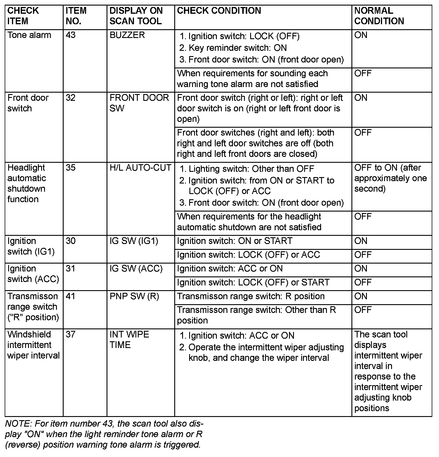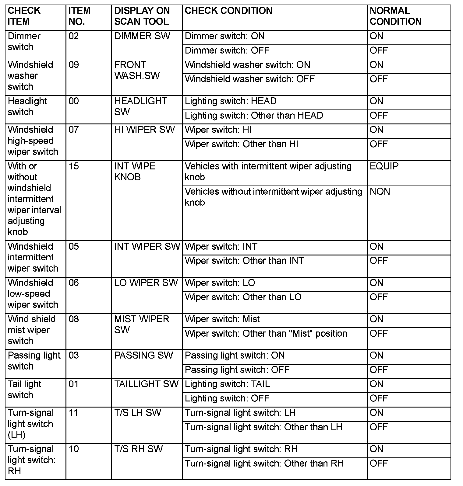 Data List Reference table - ETACS ECU: