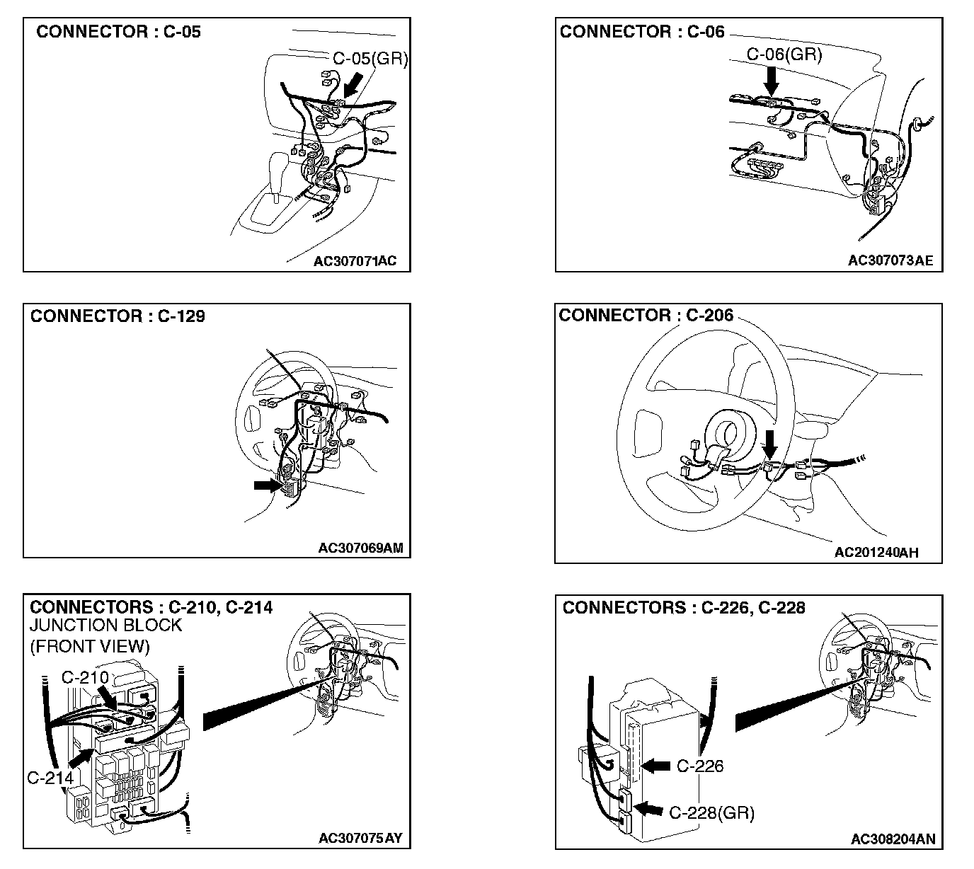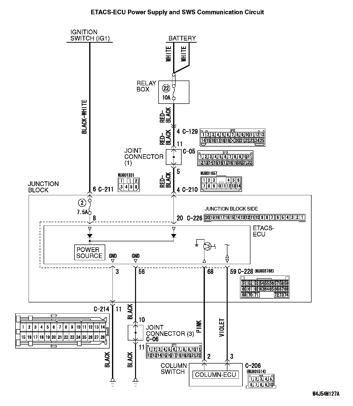 Q: Are column switch connector C-206 and ETACS-ECU connector C-228 in good condition?