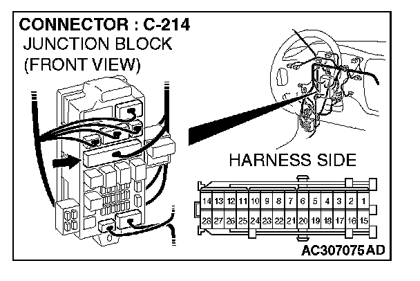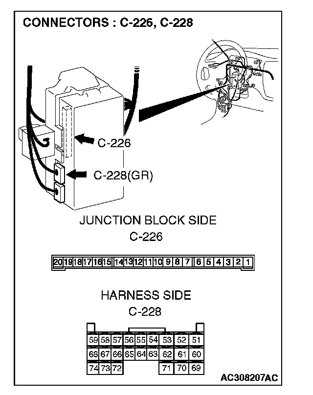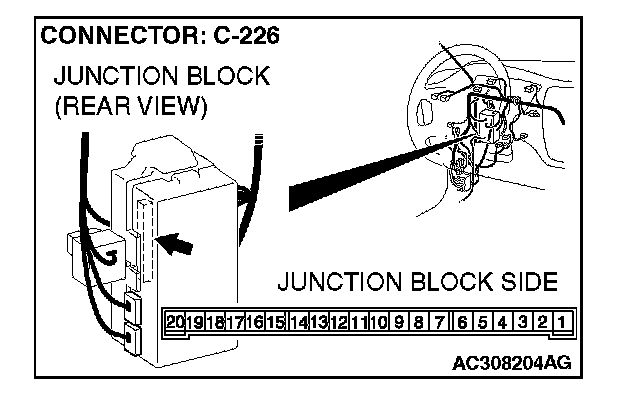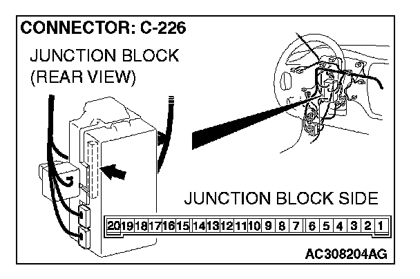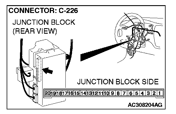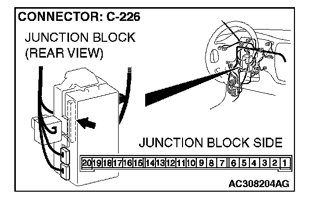 1. Disconnect ETACS-ECU connector C-226 and measure the voltage available at the junction block side of the connector.