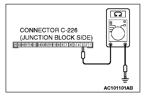 1. Disconnect ETACS-ECU connector C-226 and measure the resistance available at the junction block side of the connector.
