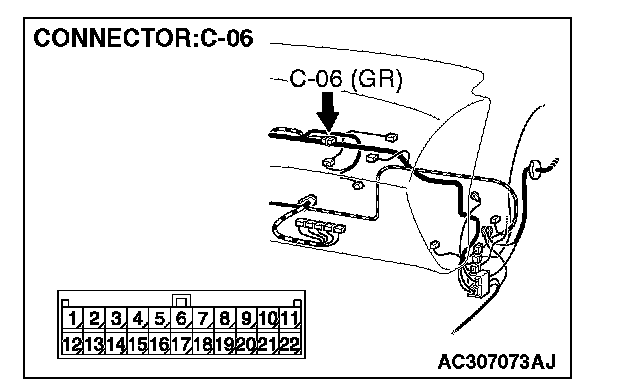 NOTE: Also check joint connector C-06 and junction block connector C-214 for loose, corroded, or damaged terminals, or terminals pushed back in the connector. If joint connector C-06 or junction block connector C-214 are damaged, repair or replace the damaged component(s) as described in Harness Connector Inspection.