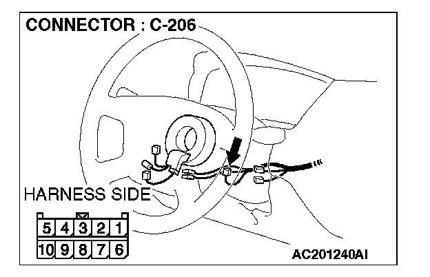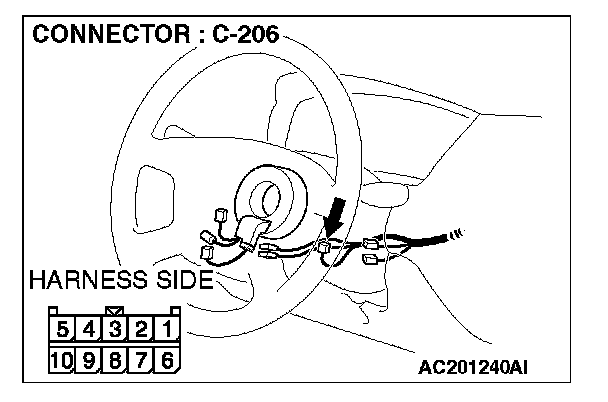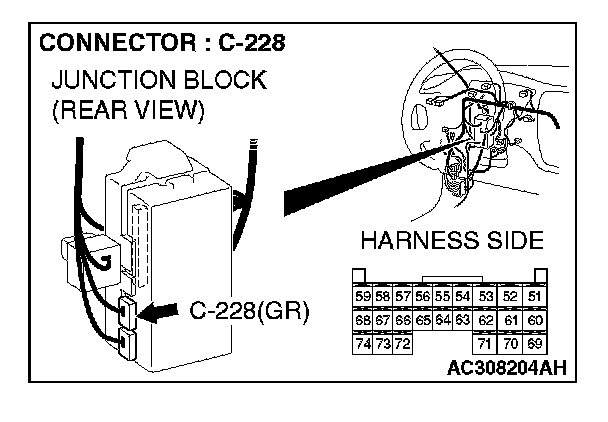 STEP 9. Check the wiring harness between column switch connector C-206 (terminal 3) and ETACS-ECU connector C-228 (terminal 59).