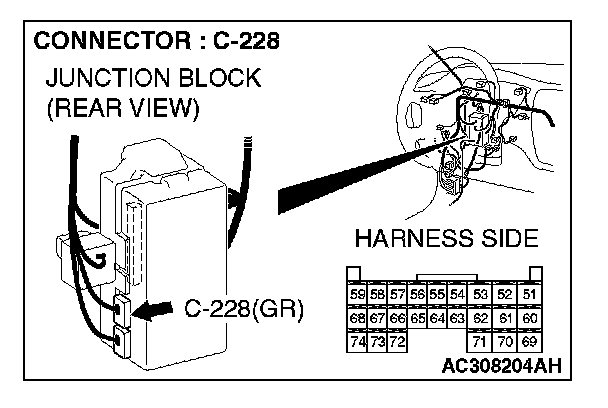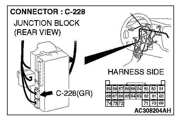 STEP 5. Check ETACS-ECU connector C-228 for loose, corroded or damaged terminals, or terminals pushed back in the connector.