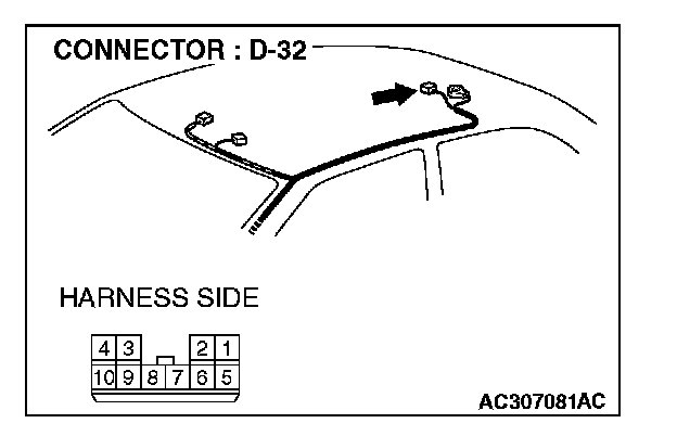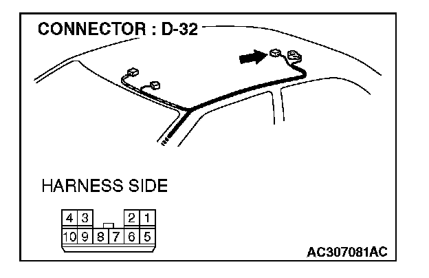 STEP 1. Check sunroof motor assembly connector D-32 for loose, corroded or damaged terminals, or terminals pushed back in the connector.