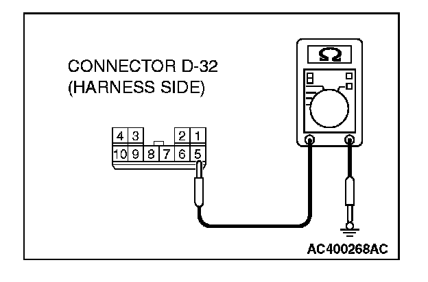 STEP 7. Check the wiring harness between sunroof motor connector D-32 (terminal 5) and ground.