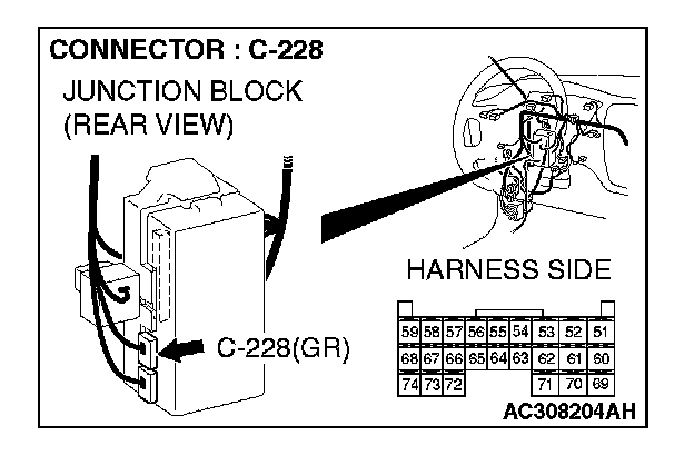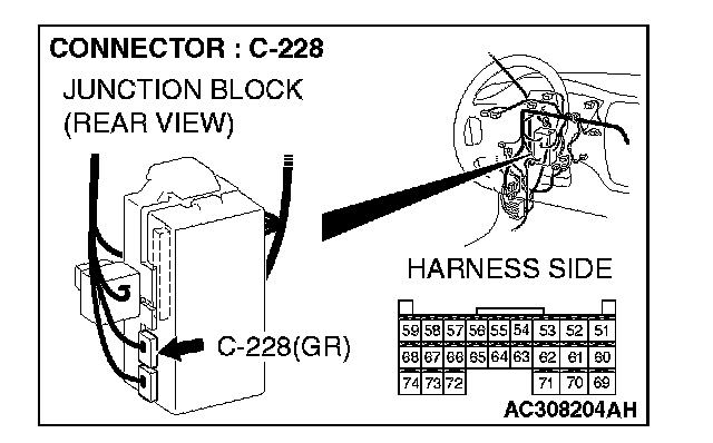 STEP 8. Check ETACS-ECU connector C-228 for loose, corroded or damaged terminals, or terminals pushed back in the connector.