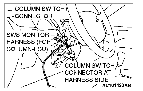 2. Connect SWS monitor kit MB991813 to the column switch connector.