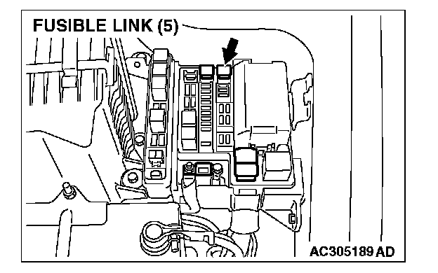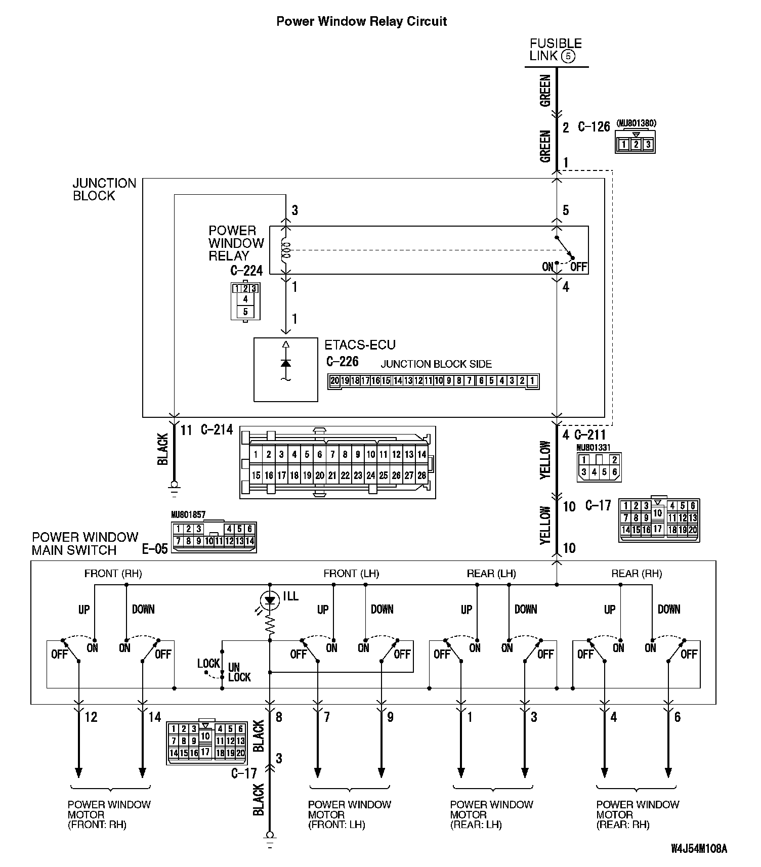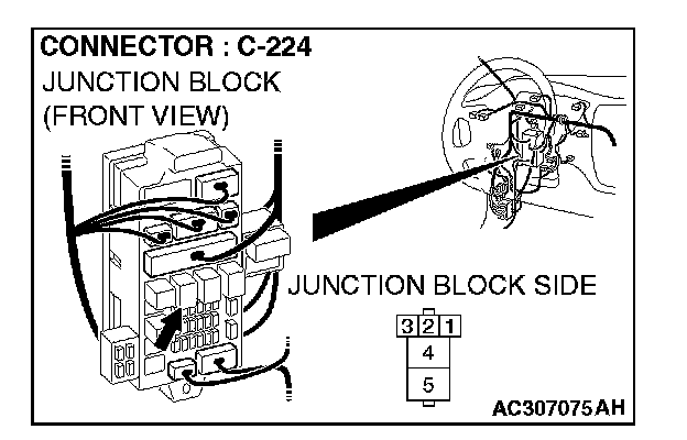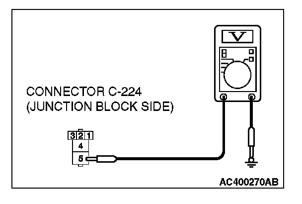 STEP 5. Check the fusible link (5) line of power supply circuit to the power window relay. Measure the voltage at power window relay connector C-224.