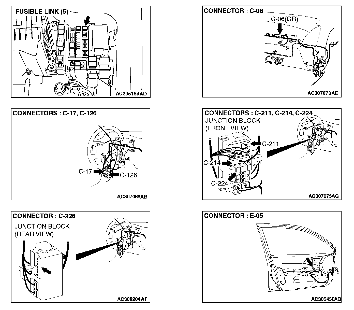 STEP 6. Check the wiring harness between power window relay connector C-224 (terminal 5) and fusible link (5).