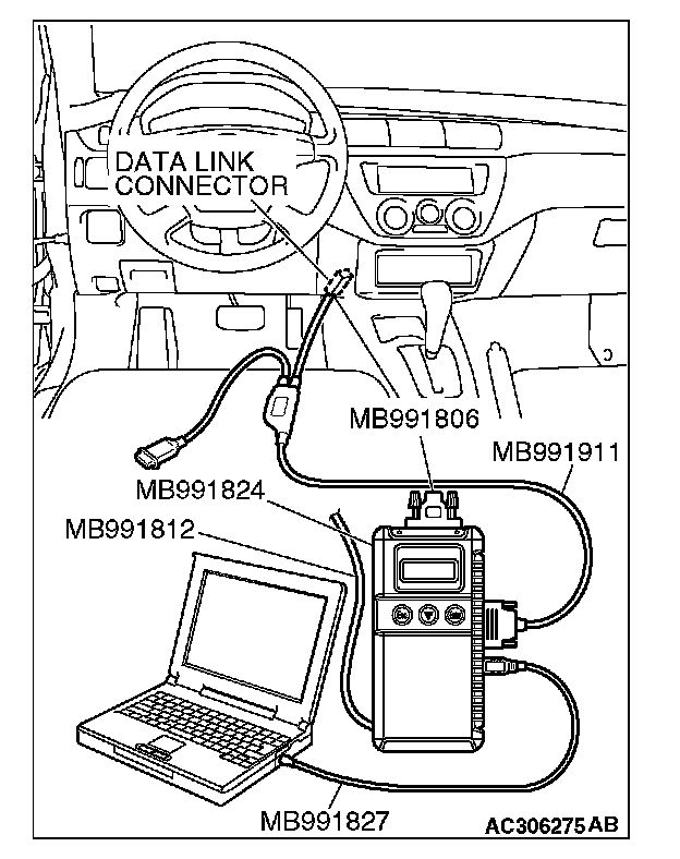 1. Connect scan tool MB991958 to the data link connector.