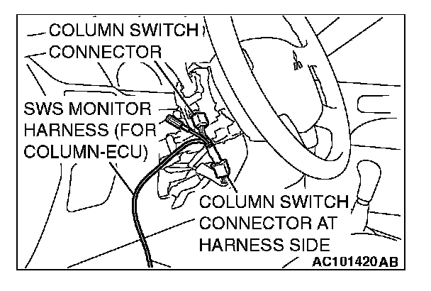 2. Connect SWS monitor kit MB991813 to the column switch connector.