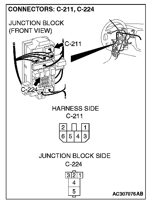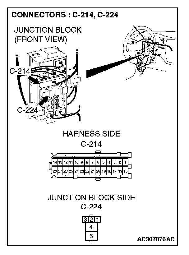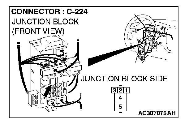 STEP 3. Check power window relay connector C-224 for loose, corroded or damaged terminals, or terminals pushed back in the connector.