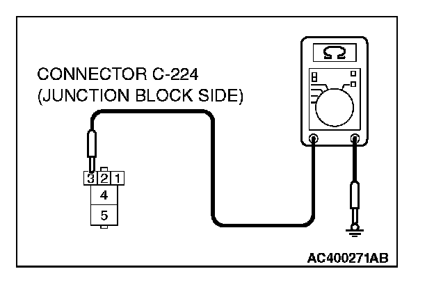 STEP 7. Check the ground circuit to the power window relay. Measure the resistance at power window relay connector C-224