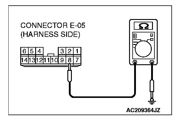 2. Measure the resistance value between terminal 8 and ground.