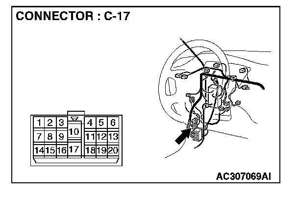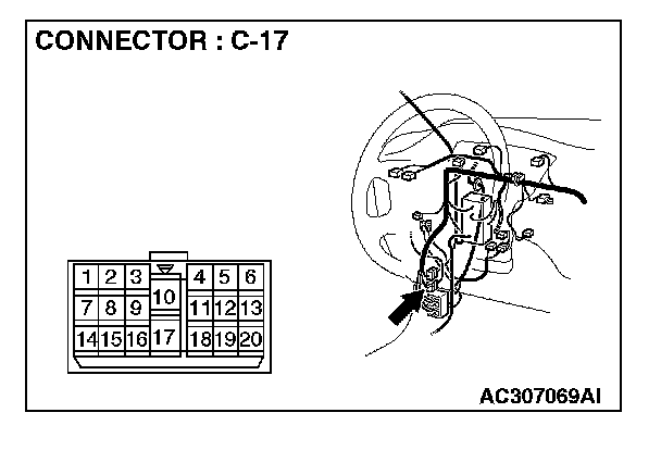 NOTE: Also check intermediate connector C-17 for loose, corroded, or damaged terminals, or terminals pushed back in the connector. If intermediate connector C-17 is damaged, repair or replace the damaged component(s) as described in Harness Connector Inspection.