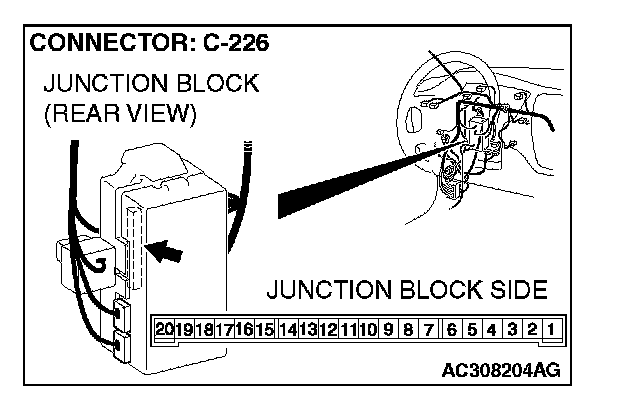 STEP 13. Check ETACS-ECU connector C-226 for loose, corroded or damaged terminals, or terminals pushed back in the connector.