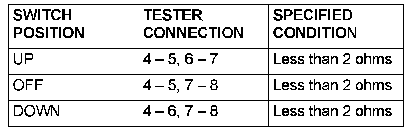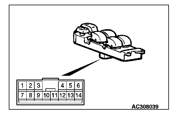 STEP 2. Check each switch on the power window main switch for continuity.
