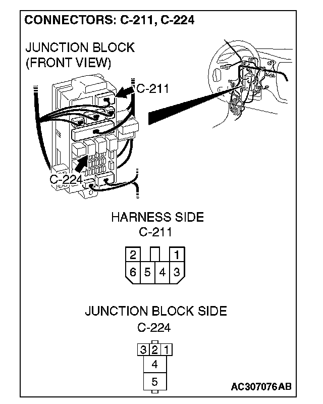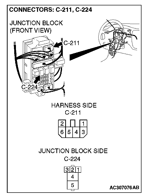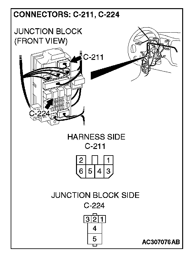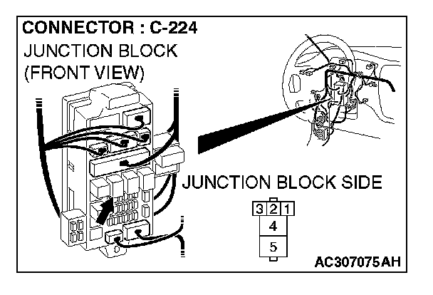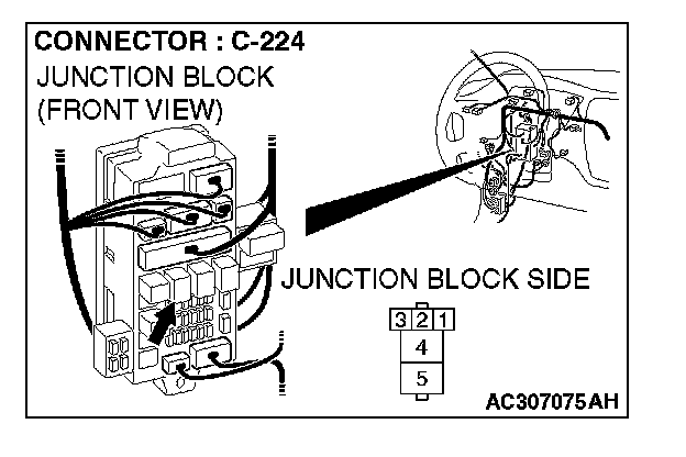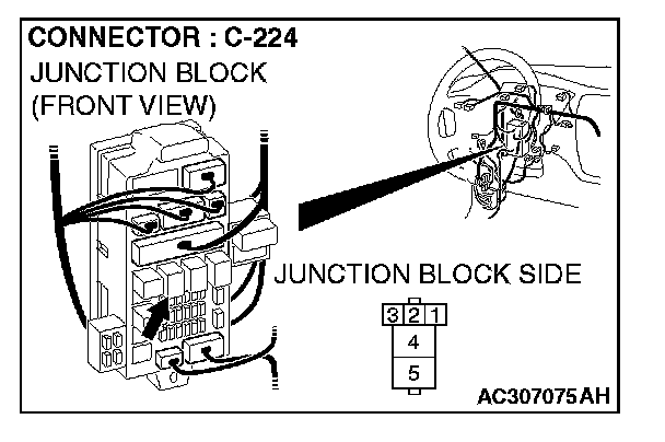 STEP 9. Check power window relay connector C-224 for loose, corroded or damaged terminals, or terminals pushed back in the connector.