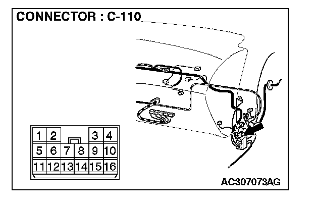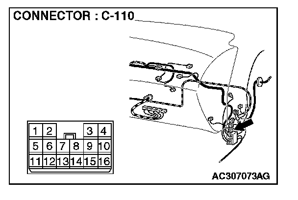 NOTE: Also check intermediate connectors C-110 and C-17 for loose, corroded, or damaged terminals, or terminals pushed back in the connector. If intermediate connectors C-110 or C-17 are damaged, repair or replace the damaged component(s) as described in Harness Connector Inspection.
