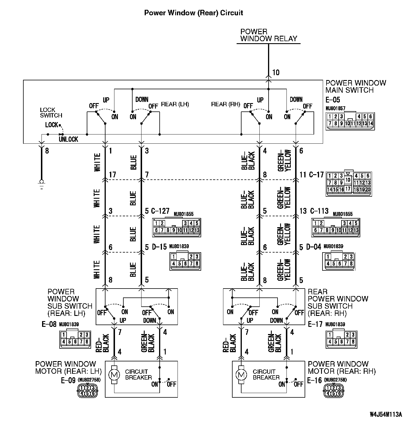 Power Window (Rear) Circuit: