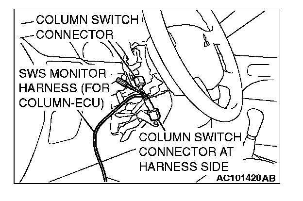 2. Connect SWS monitor kit MB991813 to the column switch connector.